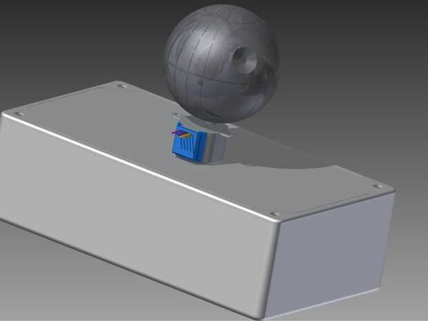He proporcionado los archivos de stl para la estrella de la muerte, que divide en dos partes separadas para conocer las limitaciones de tamaño de las impresoras 3D más, así como el archivo de stl para la tapa modificada. Tuve que modificar la tapa para que el perno de motor paso a paso a través de la parte superior y también para permitir que el sensor de infrarrojos recibir señales.