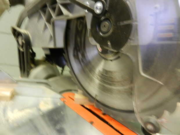 Coloque la hoja de sierra entre el extremo de la tira y su marca.