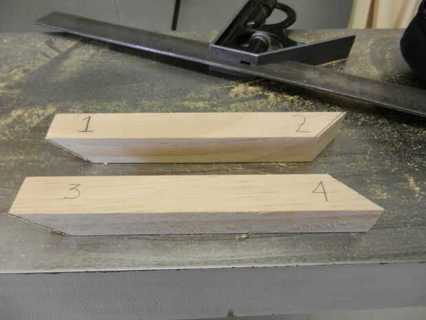 Hacer el corte inicial (lado izquierdo) igual que el primer 6. Girar la sierra inglete 45 grados a la izquierda. Usted tendrá que ajustar su plantilla si usas uno.