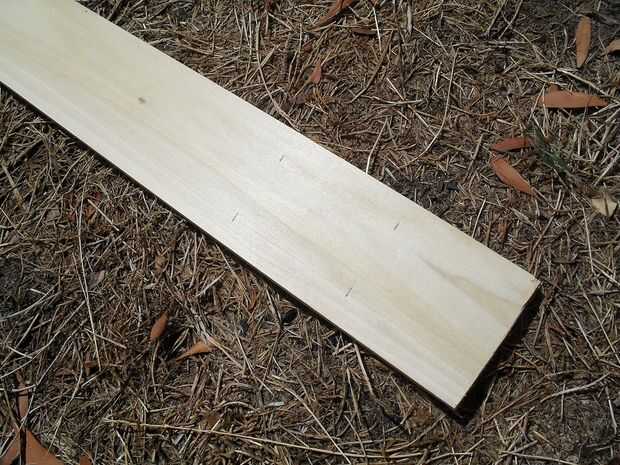 Marcar la pieza de madera con un lápiz. Dibujar cuadrados de igual longitud con una regla.