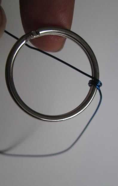 Empezar a envolver el alambre alrededor del anillo de claves. No tiene que ser muy aseado, añadiendo otra capa de alambre encima de esto. Es más fácil trabajar con longitudes más cortas del alambre, alrededor de 20cm es una longitud buena.