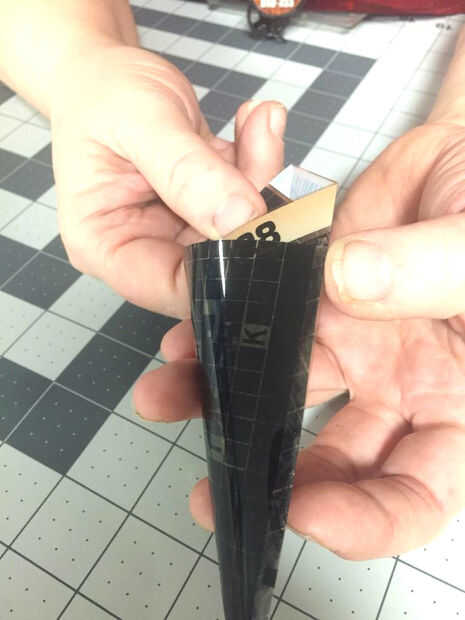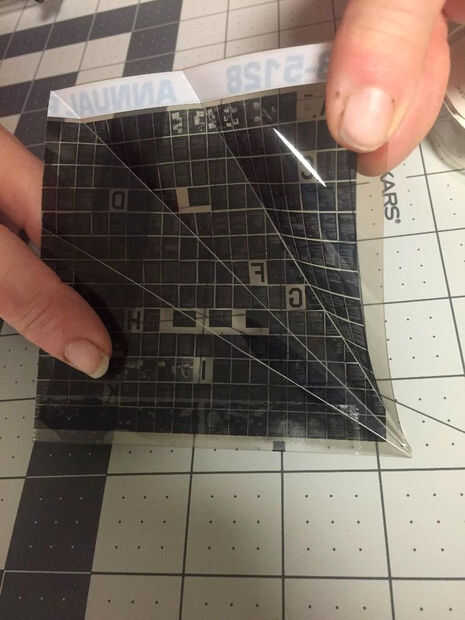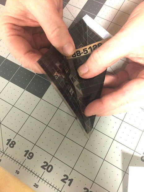 A continuación, coloque una pequeña tira de cinta de doble cara a lo largo del eje x.