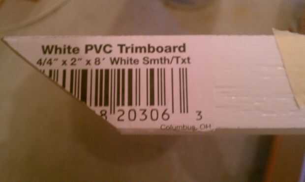 (3) 1 "x 2" x 8' PVC moldura tablero (Menards)