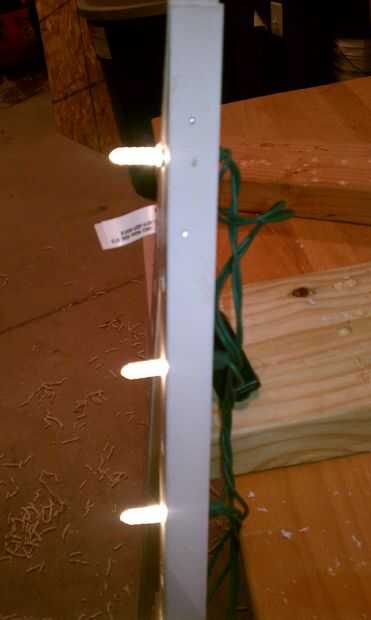 Con mi botón de "goesinto" en mi calculadora, me da 20 lámparas cada punto. Terminé con 1 3/4 o menos separación entre bulbos. Hacer un plan, marcar lugares y lejos del taladro. (Sugiero comprobar en su cuenta primero!) Utilizar un 3/8" a través del taladro, luego agregar una conicidad de la parte trasera con una herramienta de 'piña' en forma de rebabas para conexión de la lámpara. Pruebe la colocación de sus lámparas para que el bulbo entero sobresale, pero no demasiado. Diferentes bombillas o marcas pueden requerir diferentes agujeros.