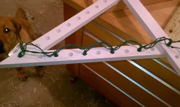 Empecé mis cuerdas en el punto más bajo, mi plan es tener la estrella en lo alto y alimentar electricidad desde abajo.