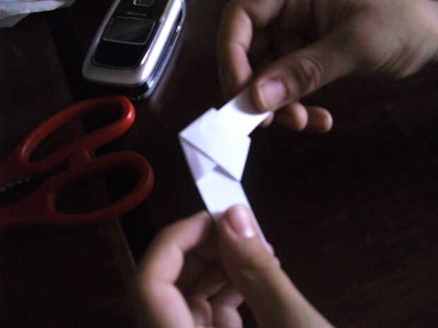debe hacer un lazo con el papel para hacer la forma de un Pentágono que debe parecerse a las imágenes de abajo. después de este homenaje plegable a lo largo del borde hasta que sólo una pequeña parte de la tira restante, meter en los otros pliegues.