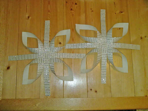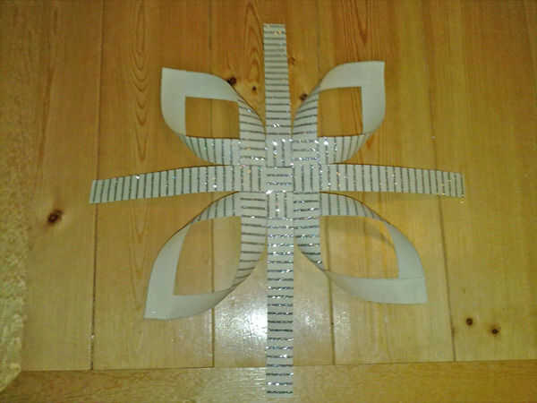 Tomar 2 tiras de la 'esquina' (como se muestra en la foto 3), girar y combinar extremos. Luego adhiera las tiras donde se superponen.