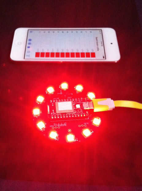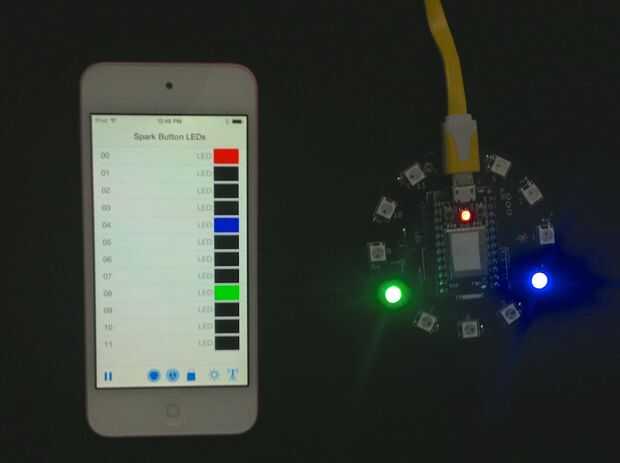 int setColorInModeFunction(String args) { unsigned char allValuesMaxCount = 25; // 64 chars -24 separator = 40 digis; // 40/25 digits = 1.6 digits per value double allValues[allValuesMaxCount]; unsigned int count = parseArgsIntoDoubles(args, allValues); if(count > allValuesMaxCount) {// How to deal with a once-in-a-lifetime situation? Serial.println("Houston, we have a problem!"); } double mode = allValues[0]; if(THEFEATURE_FUNCTION == mode)// set overall brightness and rotation {// 1 == rpm, 2 = brightness double rotationExponent = allValues[1]; rotationDirectionIsClock = (0 < rotationExponent); float buttonRpmExp = (float)fabs(rotationExponent); rpm = (unsigned int) round(pow(2,buttonRpmExp));// the only case we get fractional exponents, e.g. smooth changes buttonRpmIndex = (unsigned char)round(buttonRpmExp);// to get the buttons as index right brightness = (float)constrain(allValues[2],0.0,1.0); int exp; double fraction = frexp(256.0*brightness, &exp); brightnessIndex = (unsigned char)constrain(exp,0,7); } else if (SINGLECOL_FUNCTION == mode && 3 == count)// set one indexed color { unsigned int aColorIndex = constrain((unsigned long)(floor(allValues[1])),0,11); theColorValues[aColorIndex] = constrain((unsigned long)(floor(allValues[2])),0,0xFFFFFF); } else // some more or all colors will be set { unsigned char startIndex = 0; unsigned char offset = 0; unsigned char colorsCount = 12; // 12: there will be 12 values for all the LEDs, there is no mode, value is positive if( 0 <= mode && 12 == count)// we got all values, no explicit mode { // nothing } else if(INDEXEDCOL_FUNCTION == mode) { // set all values for the loop startIndex = constrain((unsigned long)(floor(allValues[1])),0,11); colorsCount = constrain((unsigned long)(floor(allValues[2])),1,12); offset = 3; } if(13 > startIndex + colorsCount)// no more than 12 for(unsigned int i = 0; i < colorsCount ; i++) {// set the indexed color from offset to end unsigned char readIndex = offset + i; // for readability, start at offset; theColorValues[i + startIndex] = constrain((unsigned long)(floor(allValues[readIndex])),0,0xFFFFFF); }; } return count; } Las imágenes muestran algunos casos especiales. Los LED en rojo acorta la llamada, porque el color rojo es 0x0000FF hex, decimal sólo 256. Esto es sólo en la llamada. Las siguientes dos imágenes muestran tanto un montón de LEDs en color negro, que le da una cadena de '0'.