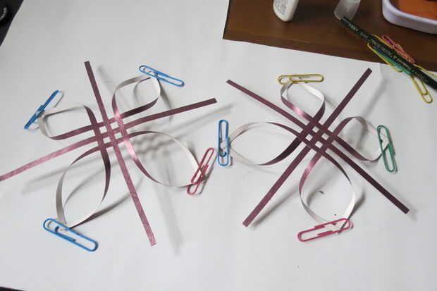 Y seguro con un clip para sostenerlo en lugar. Puede eliminar los clips una vez que se seca. Hacer dos de estos. Se necesitan dos piezas para hacer una estrella.