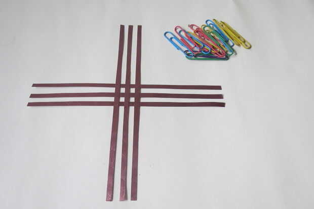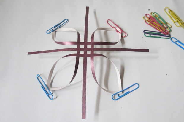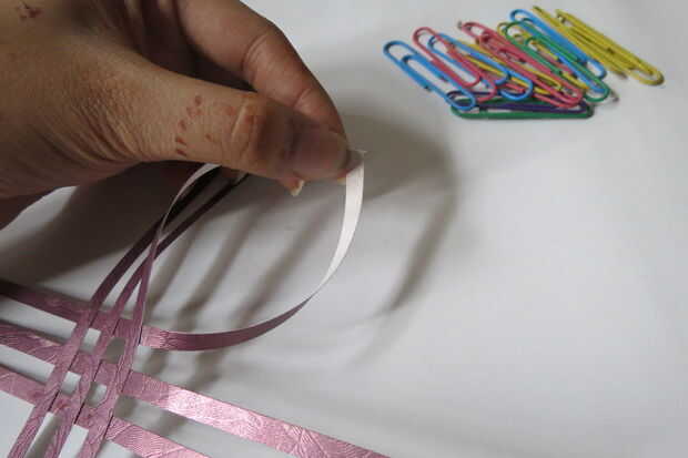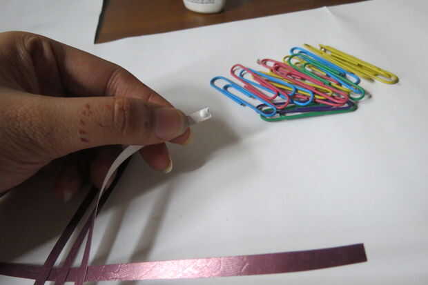 Usted necesitará algunos clips de papel para el siguiente paso. Tienes que pegar cada raya exterior juntos para formar un pétalo. (Consulte el cuadro)