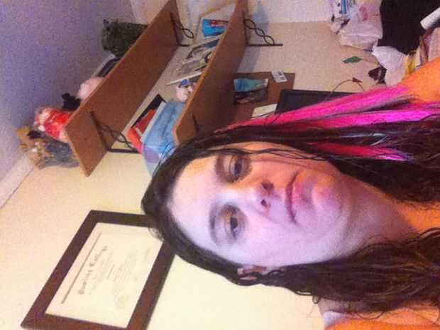 Agregué las extensiones del pelo rosa a un lado de mi pelo y volcó algunos filamentos para afectar y para cubrir los clips.