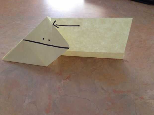 Esto es donde se va a poner duro si no sabes qué hacer de su 1. Haz una nota adhesiva y dale la vuelta hasta el. Es pegajosa en la parte superior. 2. dobla el papel diagonalmente en una dirección, hacer un pliegue. 3. Desdoble. 4. Repita con la otra esquina. 5. Desdoble. Debe verse así. 6. doble superior donde las partes adhesivas hasta el fondo. Debe ser doblado a donde está el punto en el centro. 7. despliegue. 8. esto es donde conseguir complicado así que ten muy de cerca. Doblar de la esquina superior para que el borde esté en contacto con el centro. 9. Repita con la otra esquina. 10. Mueva a dónde está la parte trasera. 11. doblar dos lados uniformemente. 12. aquí es otra parte complicada. Si empujas la esquina a donde apunta la flecha, debe tener un pliegue a la línea donde puse 2 puntos arriba. También debe ser el mismo con el otro lado. Ahora debe verse así.