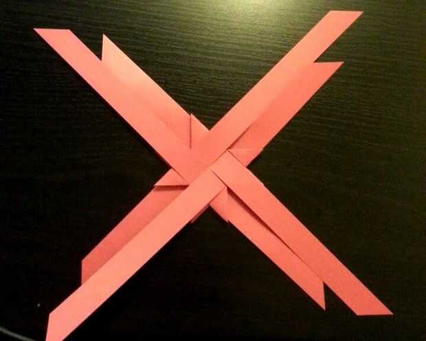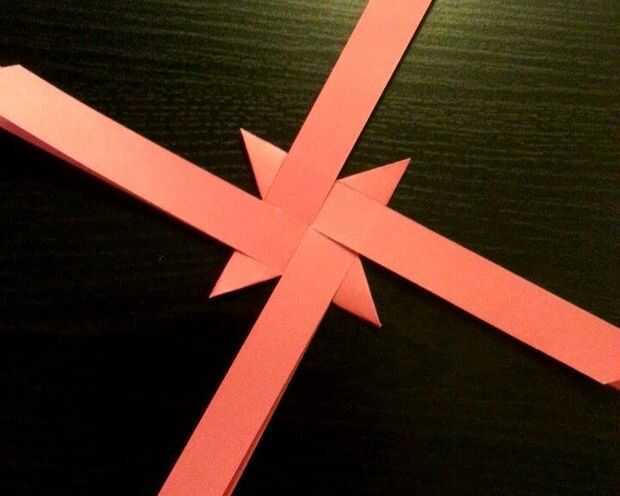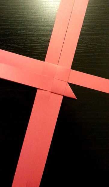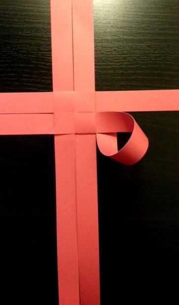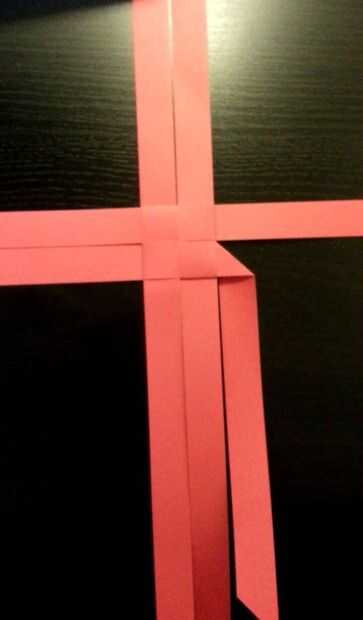 Ahora debe inclinarse en una de las tiras hacia atrás, darle la vuelta y doblar a través de la plaza en lo que parece un lazo. Cuando usted tira de la tira más por la Plaza, el lazo tendrá más pequeños. Necesita sacar lo suficiente para hacerla plana como un triángulo.