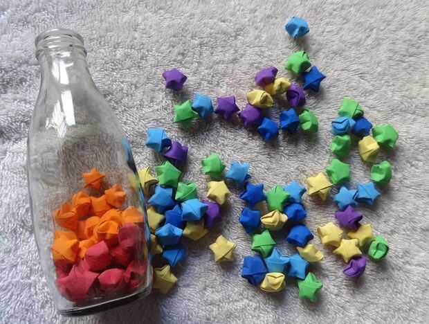 Estrellas de origami en pieza de decoración botella vidrio (6 / 7 paso)