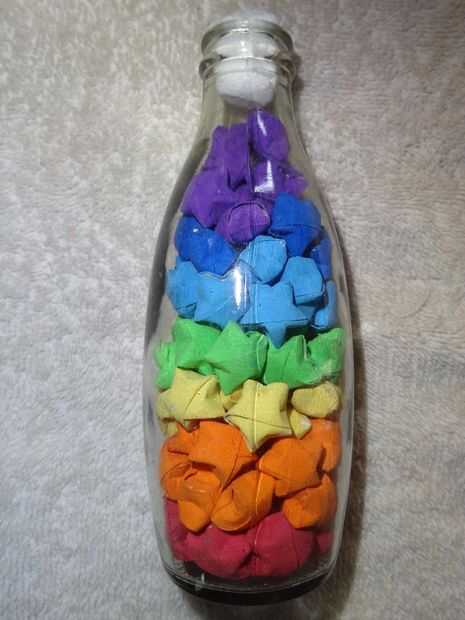 Estrellas de origami en pieza de decoración botella vidrio (7 / 7 paso)