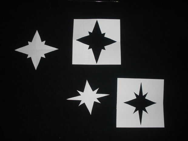 Las plantillas se pueden utilizar para la decoración de la ventana, o para marcar otras clases de materiales (plástico, metal, cartón) y hacer estrellas más durables.