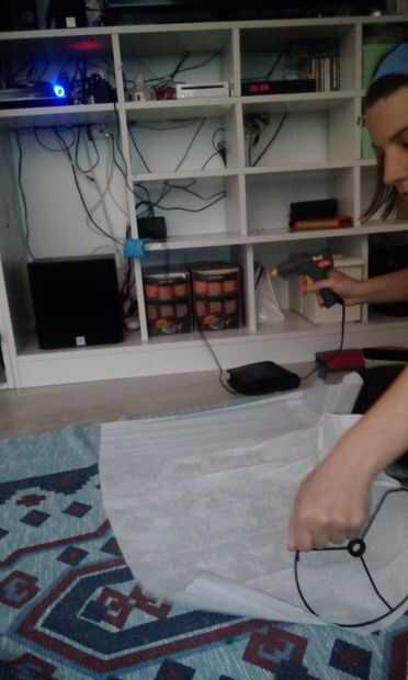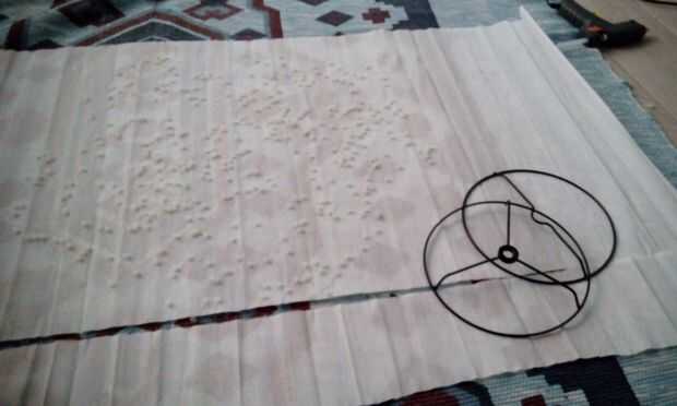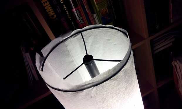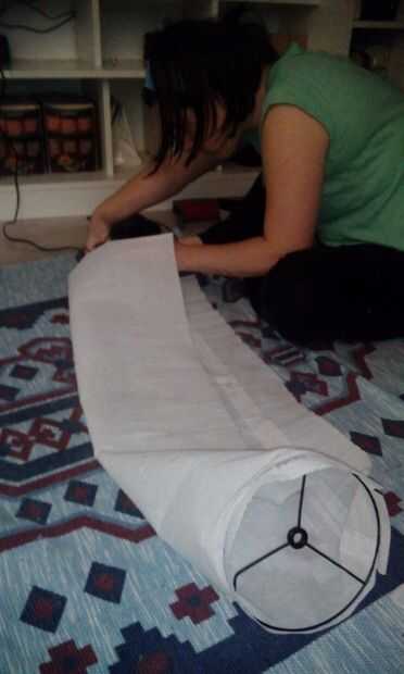 Para finalizar colocar el papel en la lámpara y la longitud, así que habrá tensión en el papel, y puede pegar el borde largo del papel.