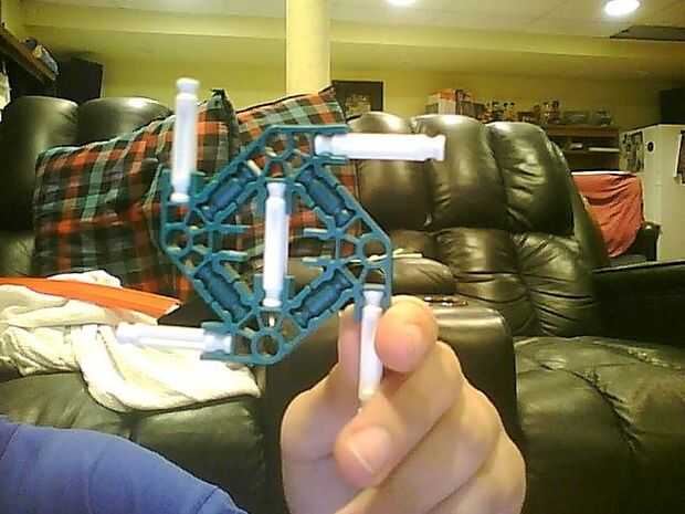 en esta foto se puede ver mi primer diseño del arma, (superior) y el nuevo. (abajo) el nuevo diseño de pistola dispone de una rueda de trigger dial en comparación con una rueda de disparo único y puede disparar más lejos y tiene la capacidad de hacer