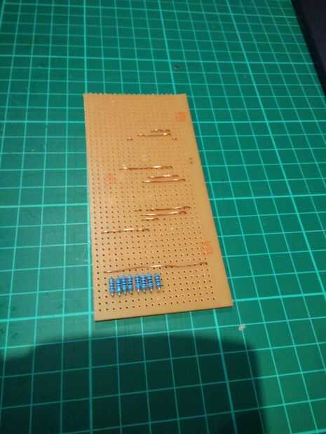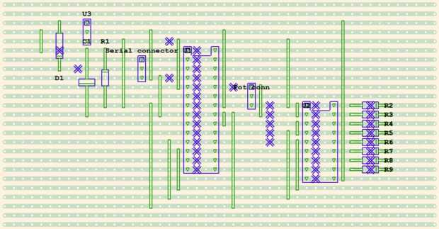 Me taladró las roturas en la placa perforada en mi taladro y luego comenzó con los conectores, como en la imagen adjunta.