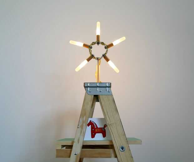 Si no he mencionado esto antes, me encanta de las ferreterías. También me encanta hacer lámparas. Así que como parte de mi plan de árbol de vacaciones, me la estrella luz árbol Topper utilizando solamente piezas de mi almacén local del hardware. Estoy muy feliz con cómo resultó! (Casi tanto como me encanta el disco gif de él encendido y apagado...)