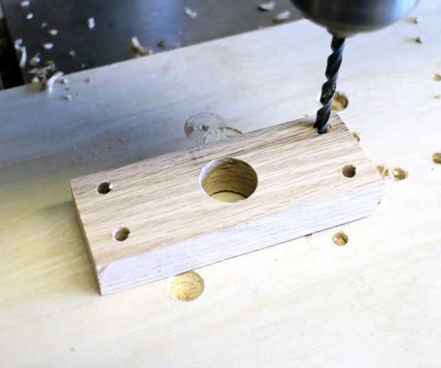 Perfore cuatro agujeros más pequeños en las esquinas del bloque para los tornillos de montaje.