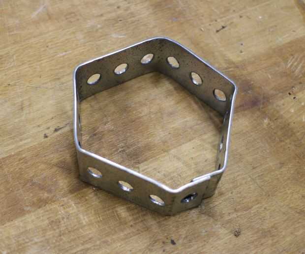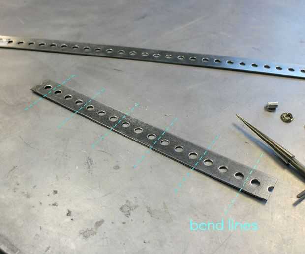 Con el vicio y el martillo, doble la barra de metal en los lugares marcados en la imagen ilustrada arriba. Compruebe que la barra quede perpendicular a la parte superior de la mordaza con un cuadrado. Esto asegurará que haces rectas curvas permitiendo que los extremos para reunirse post flexión.