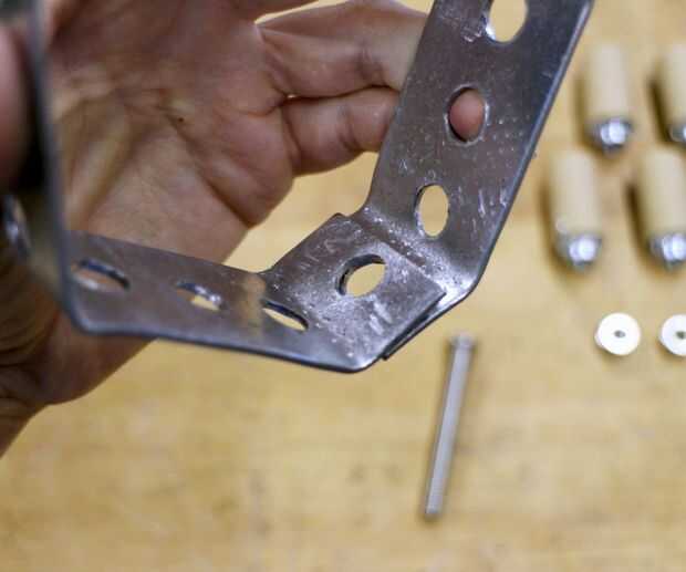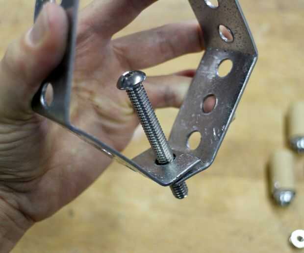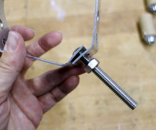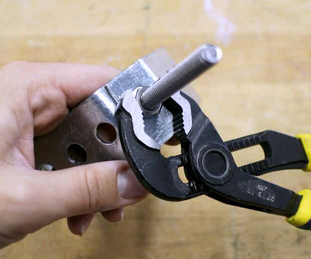 Alinee los orificios de los dos extremos y coloque el perno a través. Enroscar la tuerca y utilice los alicates para apretar hacia abajo.