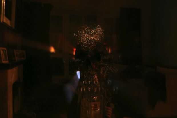Así el cráneo oscuro con no cerrar telón de fondo era bastante raro, ya que las cortinas tienen un reverso blanco que dejé abierto, entre las farolas en la distancia y el portátil abierto sobre la mesa de café que terminé con una combinación de Desenfoque radial y zoomography estroboscópica.