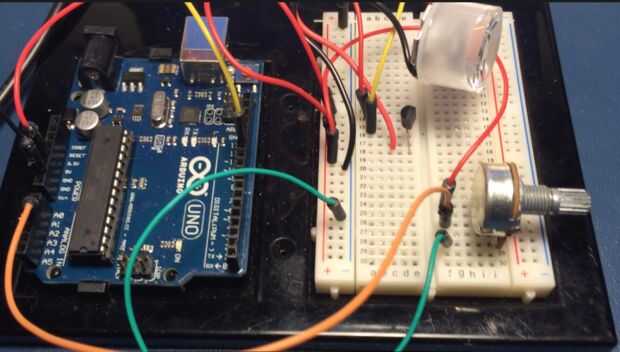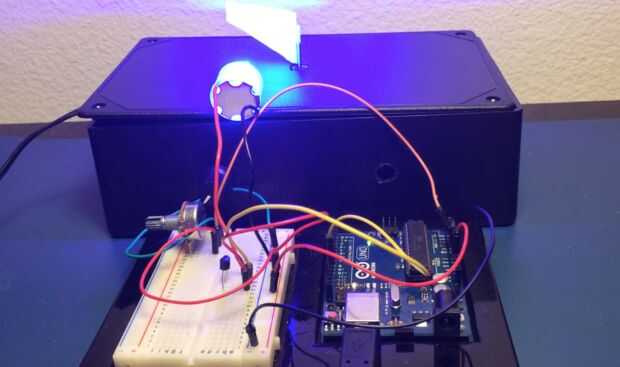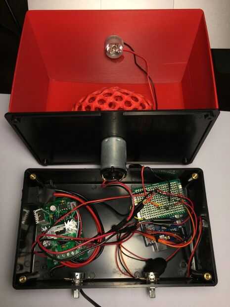 Para mi proyecto, mi objeto no tenía una base que le permita acoplarse al eje del motor. Así que utiliza una sierra de calar y cortar un círculo del tamaño de la base del objeto y asegurar con pegamento caliente. Asegúrese de que tenga el objeto centrado en el eje del motor. A continuación, conecte el motor al controlador del motor y verificar que el objeto puede girar con un mínimo a cero bamboleo. A continuación, conectar tu Arduino y LED. Montara el potenciómetro LED al frente de la caja. Este cuadro tendrá todos los circuitos, micro controlador, controlador de motor y motor.