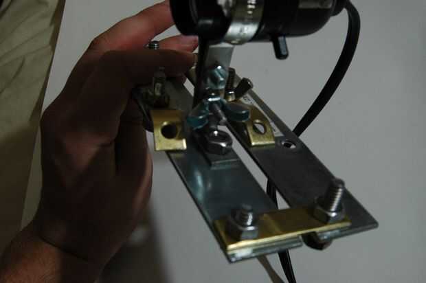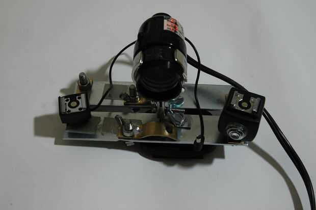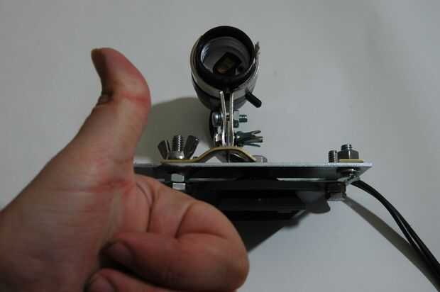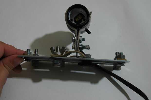 Tomar el ensamblaje de la lámpara de modelado y conéctelo a la placa base a través de la tuerca de acoplamiento (o en mi caso la pieza apretamientos, estiramientos, de una vieja funda de cámara) y asegúrese de que esté seguro. La tuerca de acoplamiento es donde el trípode o soporte de la luz se fijan a la placa base. Sin esto, basta un pedazo de metal que no se puede conectar a cualquier cosa. Ahora que tienes que es hora de hablar acerca de cómo vas a disparar tus luces estroboscópicas. La forma barata es utilizar un cable de sincronización pc. Esto es una buena manera de empezar en flash en la cámara pero pc cables tienen una tendencia a morir en usted cuando usted los necesita más.