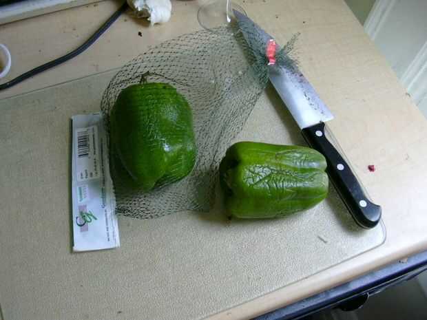 Estas bolsas se utilizan a veces para verduras de supermercado de paquete. Son básicamente tubos de malla, cerrados con cadena en el extremo de la etiqueta y algún tipo de cinta en la parte inferior. En lugar de rasgar un agujero en la malla para sacar los productos (como se hizo en esta imagen), abrir los extremos del tubo en su lugar. La cinta se pega a sí mismo, pero no la bolsa, realmente, por lo que he podido fastidiar la final con un poco de esfuerzo. La cadena en el extremo de la etiqueta saca derecho si lo haces bien. O simplemente, si se prefiere, pero trate de no dañar la bolsa.