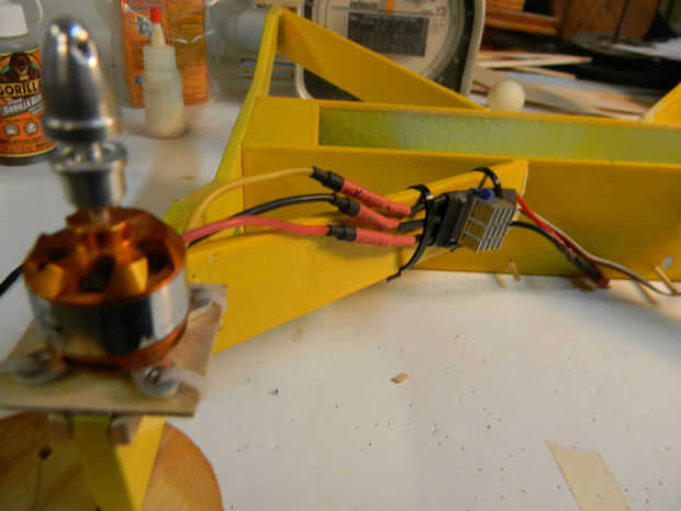 Hice un mazo para cada variador desde el enchufe de la 1 batería. Se enrutó bajo el controlador de vuelo.
