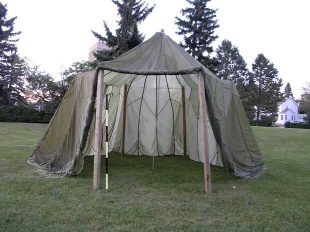 He añadido una barra de escala a la imagen de abajo. Es seis pies de altura, para darle una idea del tamaño de la estructura. El techo alto hace que la estructura espacioso y aireado al interior. Originalmente habíamos esperado para nuestra tienda dentro de la estructura (cuando pensamos que realmente estábamos obteniendo un paracaídas de 35'), pero que no podremos con esto menor ' conducto. Una larga y estrecha tienda podría ajustarla mientras menos de 7' de ancho. Dicho esto, hay fácilmente suficiente espacio para cinco o seis sillas, una mesa, unos bolsos y un par de refrigeradores.
