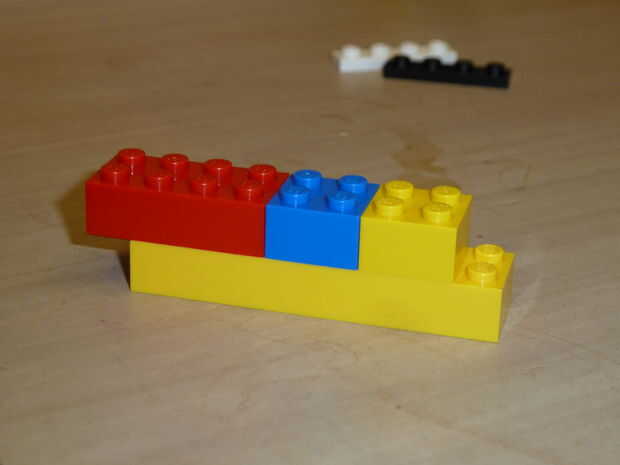 Usar un Lego amarillo punto cuatro y colocar delante de Lego azul.