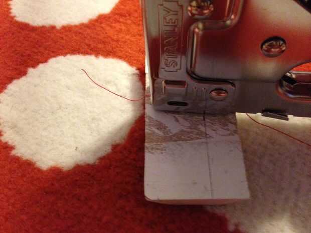 Ahora aquí viene la pistola de grapas! Para cada lugar que el cable se enlaza al marco de la usé tres grapas. Empezar por tener sobre 3-4 ancho de dedos de solapa a cualquier ayudante del marco. La primera grapa va cerca el perímetro exterior.