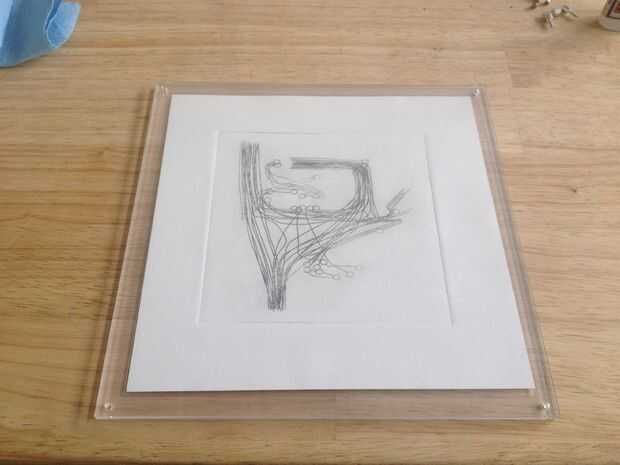 • PRO TIP: En la parte trasera, laser grabado al agua fuerte un cuadrado de registro para asegurar incluso la colocación de la impresión (especialmente desde que fui enmarcando 21 impresiones). Te recomiendo hacerlo no importa cuantas obras le son estructura.