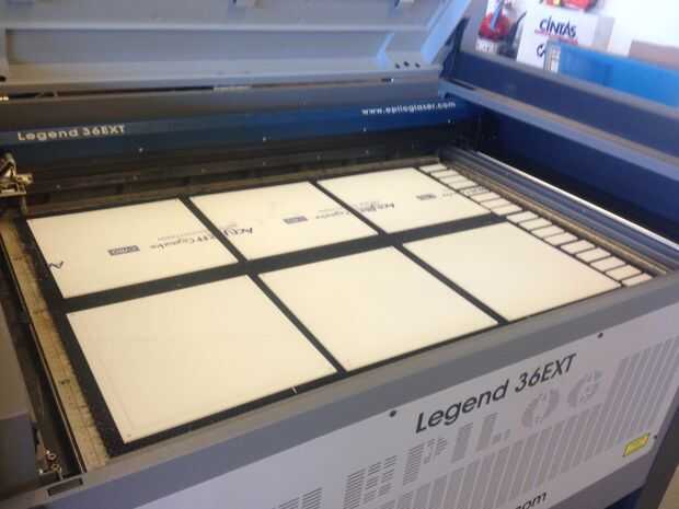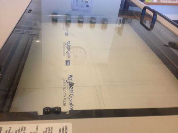 • Coloque el material en la cama. Utilicé material de 36 x 24", que encaja en el máximo en la cama de Epilog en muelle 9.
