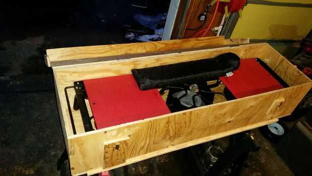 Este resistente básicamente para siempre madera contrachapada caso pasado con real ir a través de algunas ruedas de hierba me cuesta menos. la versión de bolso de duffle del fabricante o incluso si necesitaba comprar ruedas de la misma. Creo las ruedas de madera contrachapada podría fácilmente con una herramienta de corte del círculo como una sierra de vaivén o router quitar más costo usando los pedazos de la caída de la madera contrachapada.