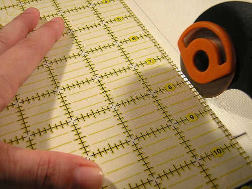 Usando el exacto cuchillo corta las líneas de final corto, así como formas un poco en la línea larga. Esto le dará un corte preciso cuando vayas con tu cortador rotatorio para recortar el resto.