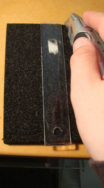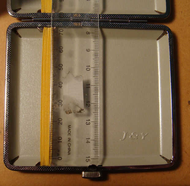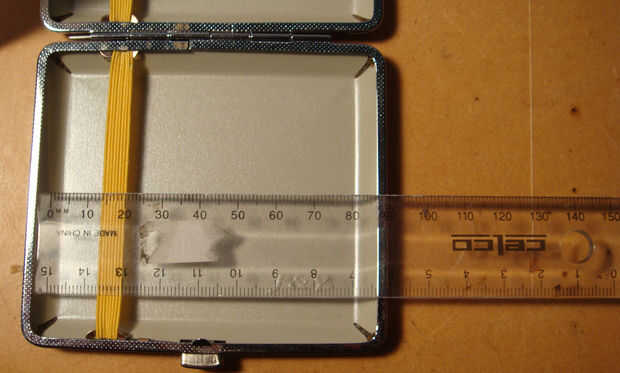 Medir el tamaño de la parte inferior plana de la caja de cigarrillo (mina fue sobre 80 mm x 70 mm) luego cortarlo con el cuchillo asegurándose de que el gobernante es recta.