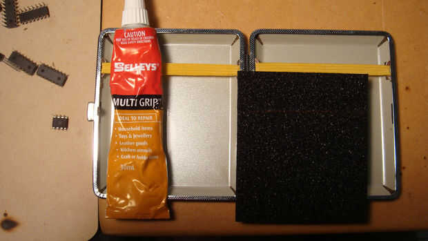 Luego pegar la espuma a la caja y presione abajo firmemente (querrá algo lave un pequeño tirón en la parte superior hasta que se seque).