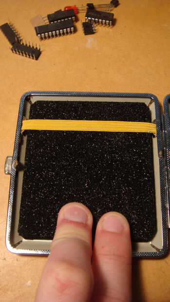 Desenganche el elástico del lado que quieras la espuma en un lado primero aplicar pegamento a la caja y la espuma asegurándose de hacer las cosas bien a los bordes.