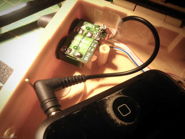-Soldadura de los cables del auricular a la Junta de jack de auriculares. L izquierda, R en derecho y G en la tierra (cable blanco). Para asegurarse que estaba trabajando, tuve mi set cabeza enchufado el Walkman y la pieza de corte enchufado el iPod... esto me ha permitido escuchar cuando hice las conexiones adecuadas.