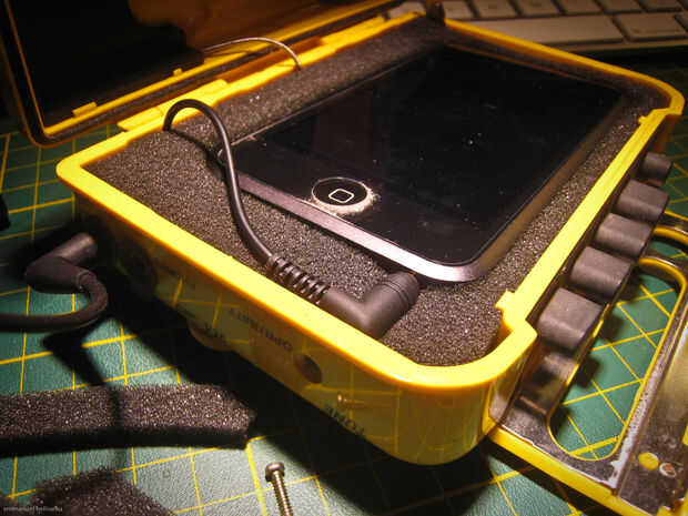 -Corte la espuma para ajustarse perfectamente en la parte inferior del Walkman (uso de capas de espuma si se puede, hace más fácil cortar el siguiente paso)
