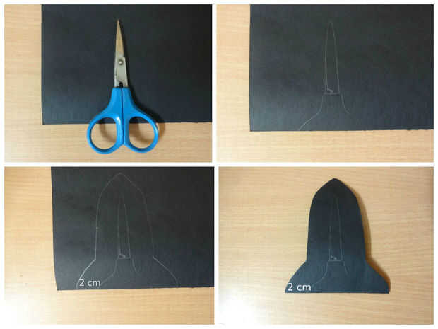 Coloque sus tijeras en una hoja de papel (grueso) y trazar su contorno. Asegúrese de que una pequeña parte de las asas son que sobresalen hacia el exterior (como se muestra en la imagen).