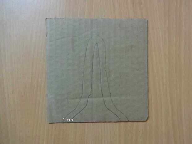 Ahora toma un trozo pequeño de cartulina y dibujar la misma tijera en él. ahora dibujar otro 1 cm lejos de esto. corte a lo largo de las líneas.