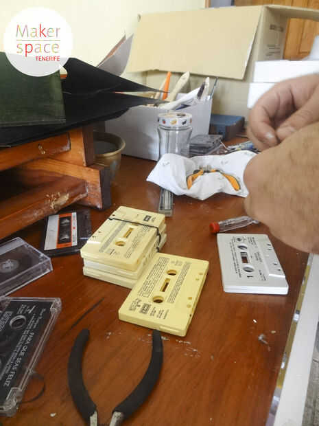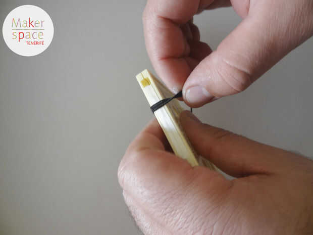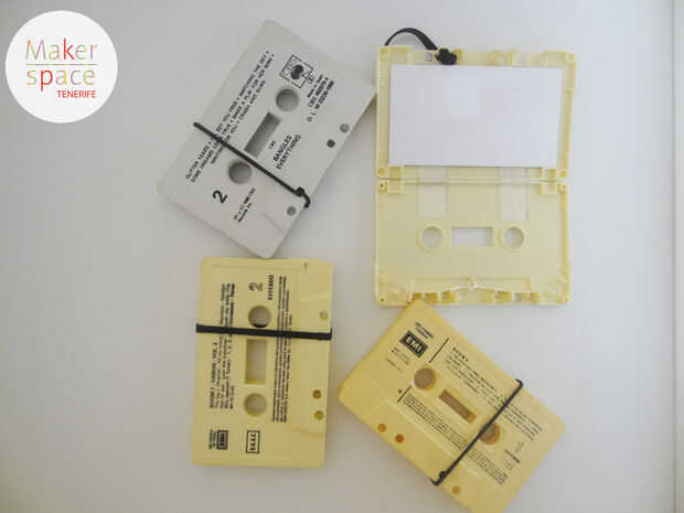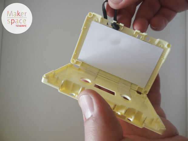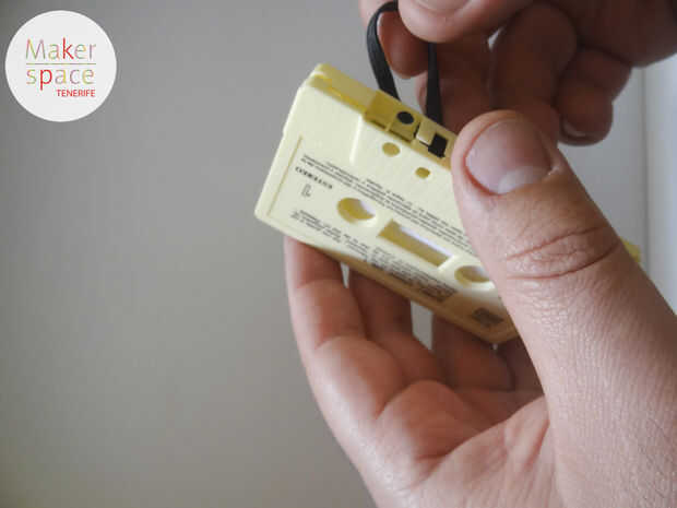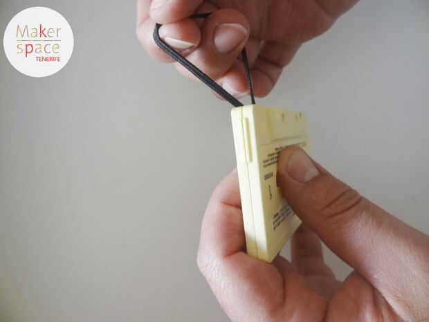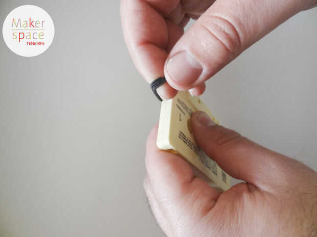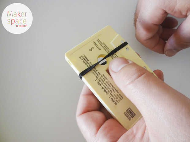 La mejora consiste en colocarle un elástico permite mantener cerrado el tarjetero. El elástico fue recuperado de unas carpetas viejas tiramos a la basura. Solo tienes cortar unos 5 centímetros y hacerle un nudo en el extremo. Lo metes por uno de los agujeros del casette y voilá.