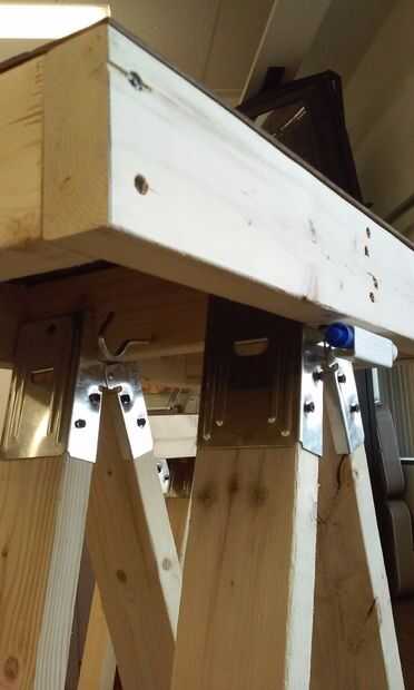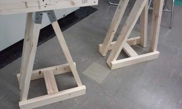 Como se ve en la segunda foto, me añadir una pieza de 2 x 4 entre los pies. Parece estabilizar las piernas y también actúa como un resto del pie.