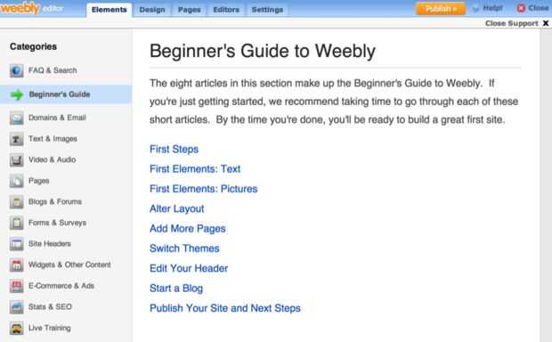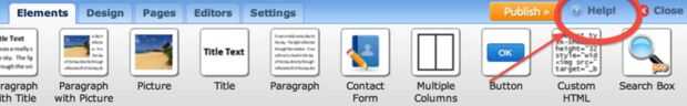 Si usted necesita más de una descripción detallada sobre los elementos o el diseño, haga clic en el "¡ ayuda!" Botón en la esquina superior derecha del encabezado. Este botón de "¡ ayuda!" le dará un proceso paso a paso en la "Guía para principiantes" para mostrar cómo agregar texto, imágenes y otros contenidos multimedia, si tienes alguna duda.