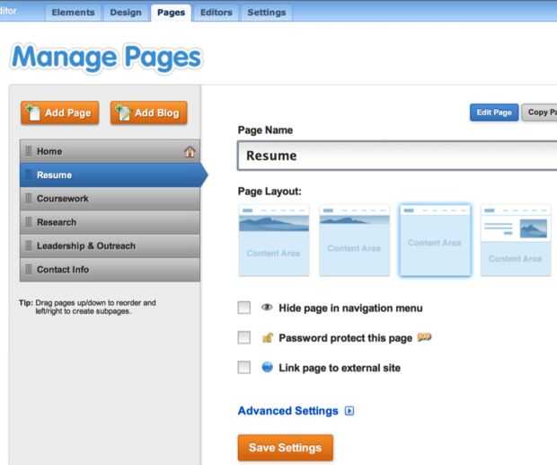 Para agregar una página, simplemente haga clic en "Añadir página" aún estando en la ficha páginas. A partir de ahí, usted puede crear su nombre de la página y el diseño. Una vez que haya terminado, haga clic en "Guardar configuración" en la parte inferior de la pantalla.